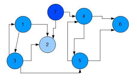 I have colored them by the incoming links, the vertex with the most in-links is the brightest, the vertex with few or no in-links is more darker.