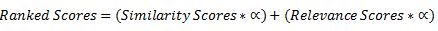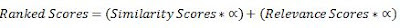 Now we can enter the main loop and compute the relevance score again for the newly found relevant candidates (this is now called the similarity score). Based on this we are going to rank these two scores with some simple vecor multiplications: